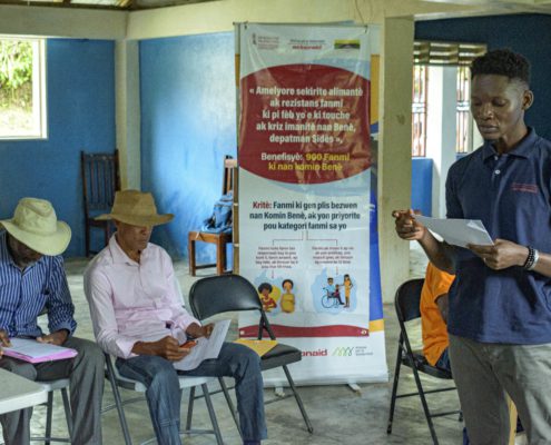 Todas estas actividades forman parte del proyecto « Mejora de la seguridad alimentaria y la resiliencia en hogares extremadamente vulnerables en Bainet » implementado junto a CROSE, ActionAid Haití y financiado por la Generalitat Valenciana.