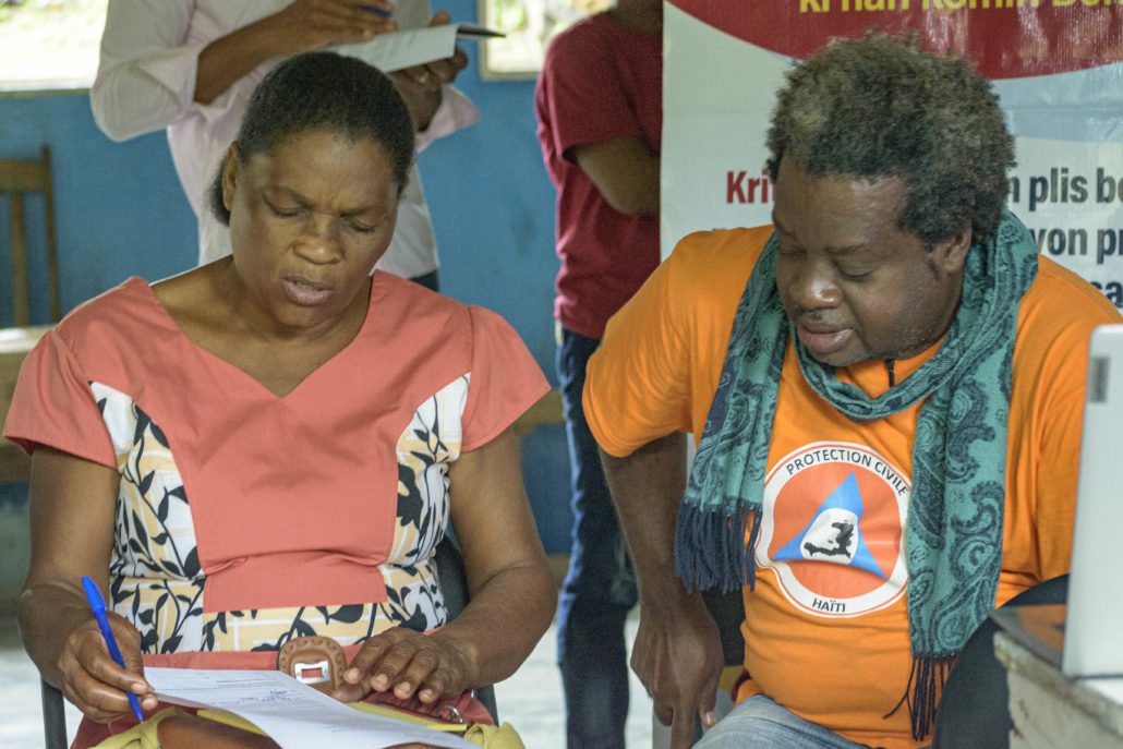 Fortalecer las estructuras de protección civil con materiales y equipos para que puedan responder a su misión es fundamental. Los miembros de estos Comités recibieron formación sobre el conocimiento de los peligros y primeros auxilios. No había ningún CERT a nivel de estas secciones comunales, así que gracias al proyecto, hemos creado 6 equipos en Bainet. Estos equipos incluyen a 29 mujeres líderes para las dos secciones, 10 de las cuales, además son agentes multiplicadores que dan sesiones de información en su comunidad.