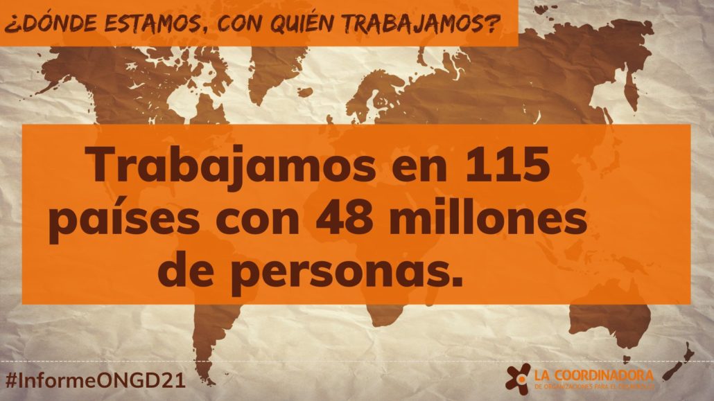 El Informe muestra que, a pesar de las múltiples y complejas crisis desatadas a consecuencia de la pandemia, el compromiso de las ONGD aumenta. Se incrementan tanto el número de proyectos (creció un 8% respecto al informe anterior, pasando de 3.857 a 4.173), como las personas con quienes trabajamos: 48 millones de personas frente a los 35 del informe anterior.