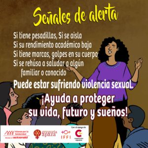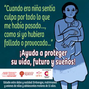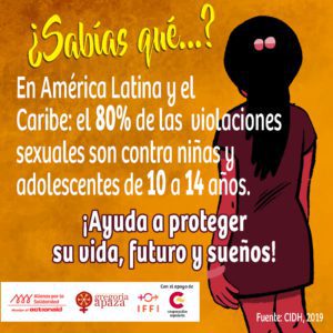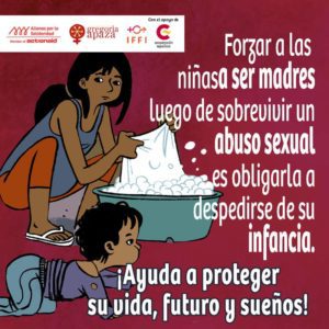 La campaña “Construyamos una nueva normalidad sin violencia” quiere promover el derecho a vivir libres de violencia de las mujeres (niñas, adolescentes y adultas) en el marco de la crisis sanitaria por el Covid-19. Y especialmente este 25 de noviembre queremos llamar la atención sobre abuso sexual y maternidades forzadas, específicamente de niñas. Por que son niñas, no madres; ayudemos a proteger su vida, su futuro y sus sueños.