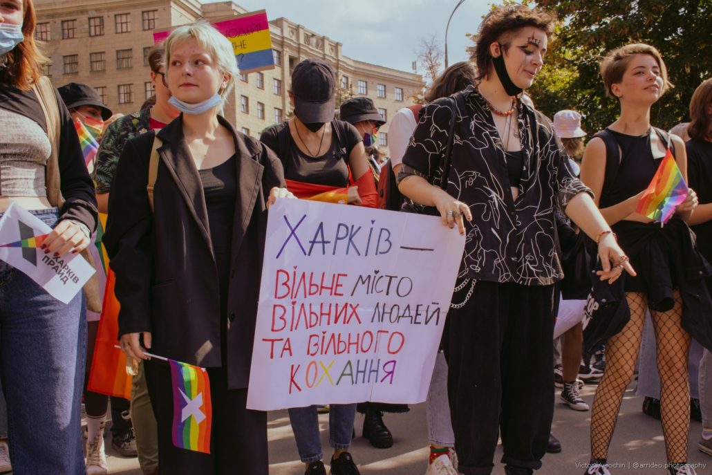 «Actualmente, nadie está a salvo en Ucrania. Todas las vidas están en riesgo. Igualmente, no debemos renunciar a los derechos humanos. Si las personas LGBTQI+ son dignas de morir por Ucrania, también son dignas de tener los mismos derechos en Ucrania«, dice Anna Sharyhina, coorganizadora del KharkivPride.