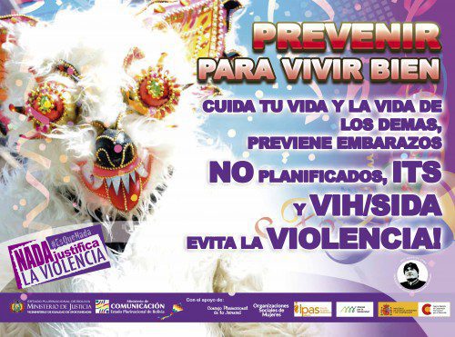 Debido a las altas cifras de violencia contra las mujeres, embarazos no deseados y enfermedades de transmisión sexual que se registran cada año en estas fiestas, los Ministerios de Justicia y Comunicación bolivianos han impulsado esta iniciativa que llegará a todo el país a través de cuñas radiales, spots de televisión, afiches y artes de prensa.