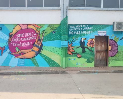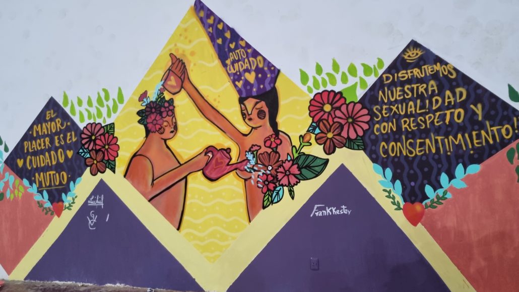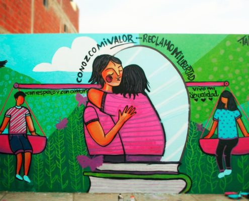 Concluyen los talleres de muralismo en defensa de los derechos sexuales y derechos reproductivos en el que participaron más de 100 jóvenes de diferentes puntos de la geografía boliviana. Estos talleres han sido impartidos por La Hef, artista y gestora cultural, con una metodología participativa en la que las y los jóvenes además de recibir información sobre derechos humanos, derechos sexuales y derechos reproductivos, manejo del espacio público, comunicación, muralismo, etc. también han podido expresar sus realidades y puntos de vista que dieron forma a los murales.