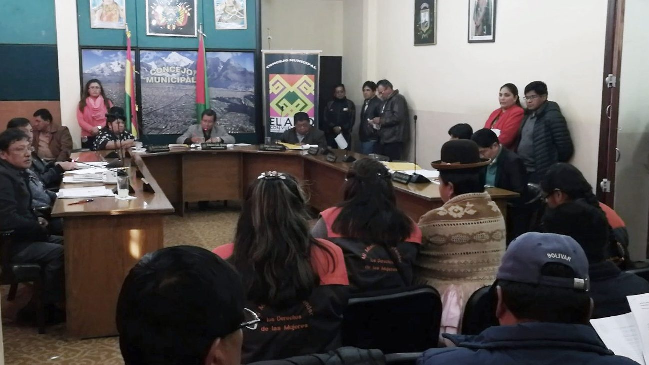 Con el objetivo de lograr un espacio de participación ciudadana, para propiciar que las Entidades u Organismos de la Administración Pública como el Concejo municipal de El Alto, puedan escuchar y atender a las Promotoras Comunitarias del Centro de Promoción de la Mujer Gregoria Apaza, el pasado 26 de enero, se llevó a cabo la audiencia pública sobre el proyecto “Estándares Mínimos de Calidad para la Atención y Respuesta a la Violencia de Género”. La actividad contó con la presencia de las Promotoras Comunitarias